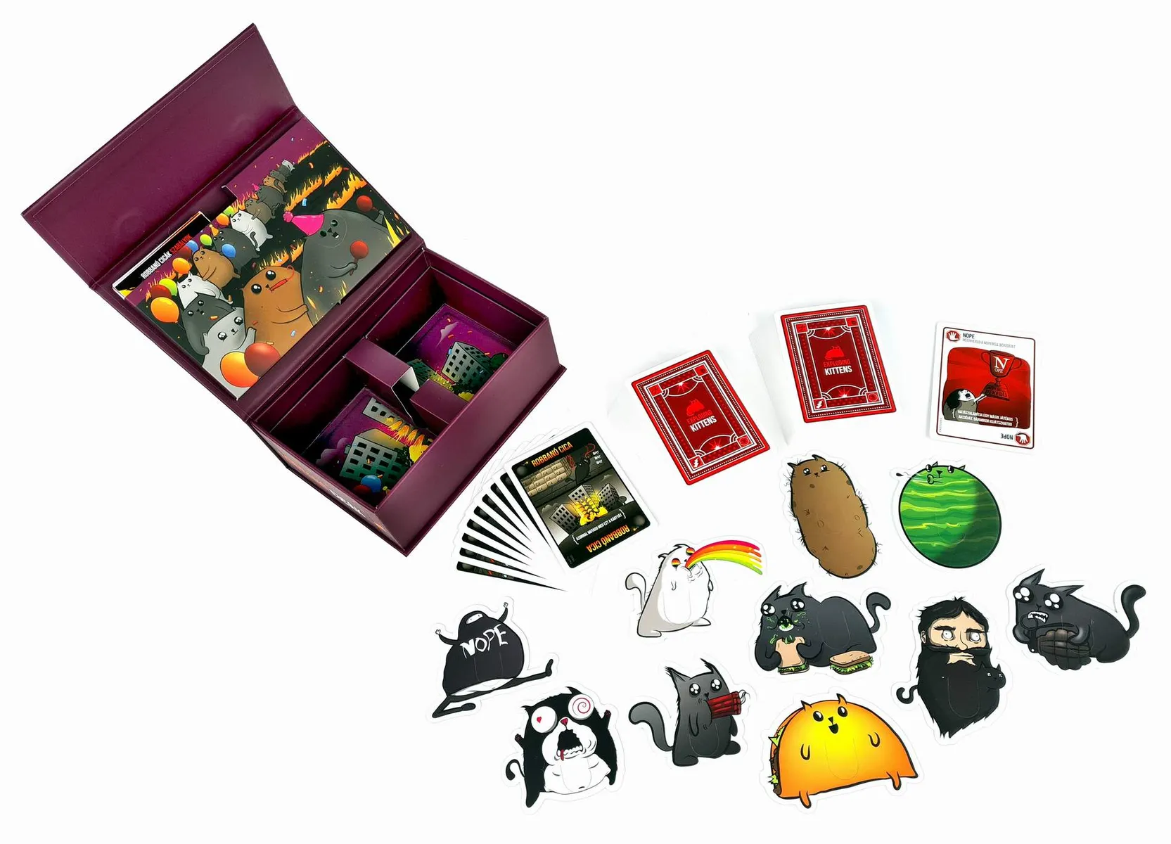Este juego independiente incluye cartas de Exploding Kittens, Imploding Kittens y la app Exploding Kittens, y admite de 2 a 10 jugadores.