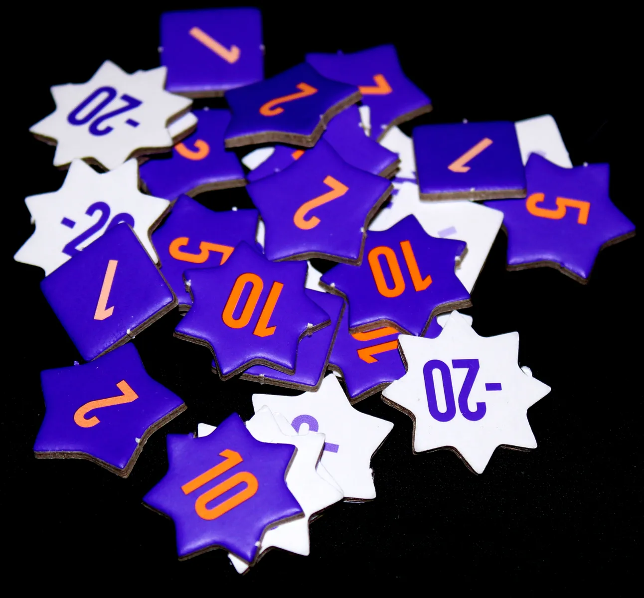 Más específicamente, las cartas tienen un doble índice, con valores diferentes en cada mitad, y las 45 cartas tienen todas las combinaciones posibles de los números del 1 al 10. Durante la preparación, quien baraja las cartas debe aleatorizar tanto el orden como la orientación de las cartas en la baraja. Una vez que cada jugador haya recibido su mano completa, la toma sin reorganizar ninguna carta; si lo desea, puede rotar su mano completa para usar los valores del otro extremo de cada carta, pero, de nuevo, no puede reorganizar el orden de las cartas en su mano.