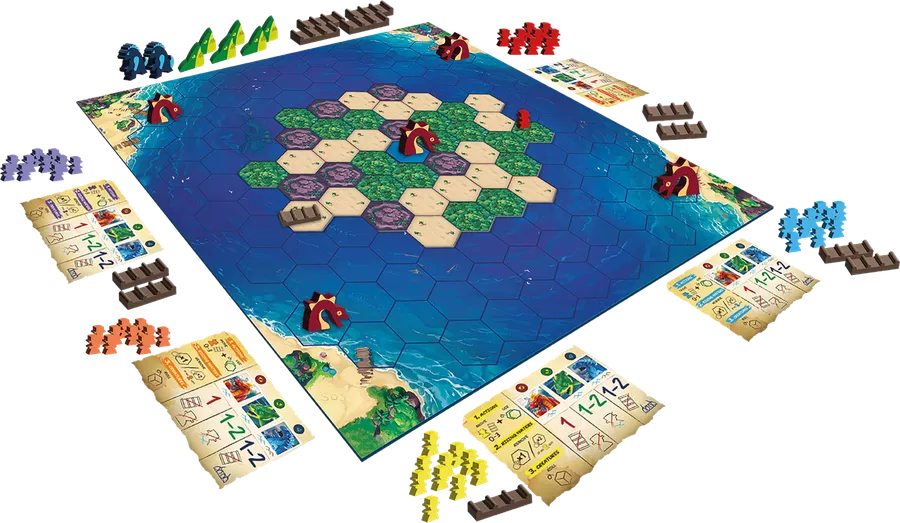 Sobrevive a la Isla es un juego despiadado en el que los jugadores intentan evacuar a sus aventureros, especialmente a los de alto valor, de una isla que se hunde para maximizar su puntuación.